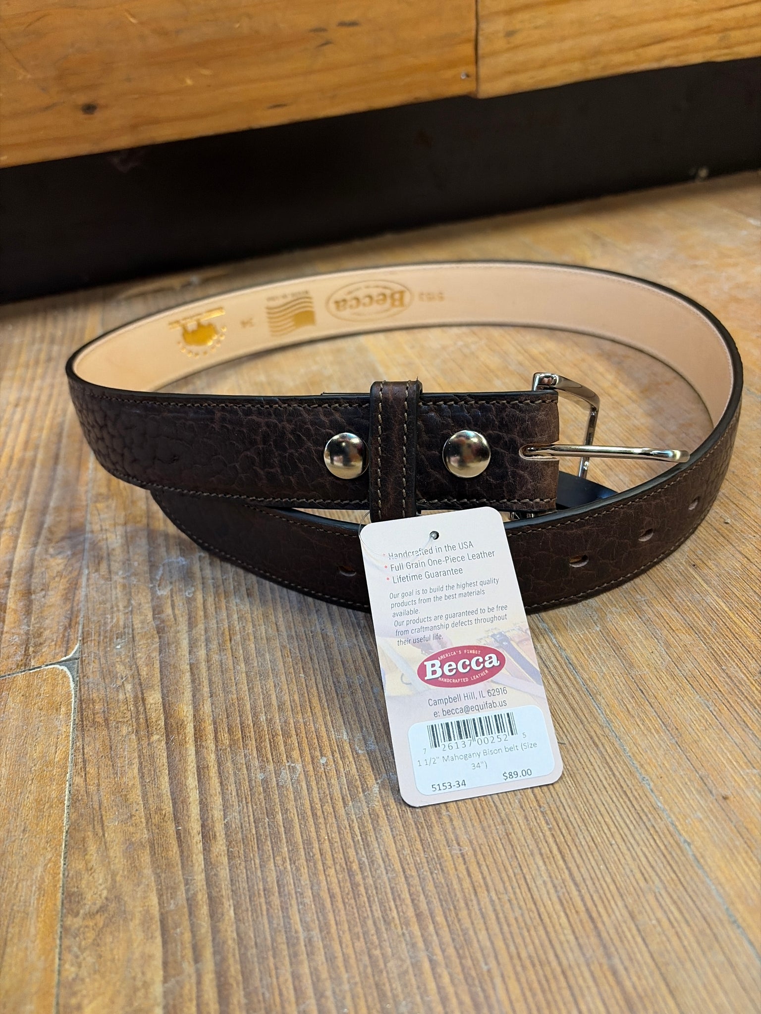 Becca 1 1/2'' Chocolate Bison Belt 5153