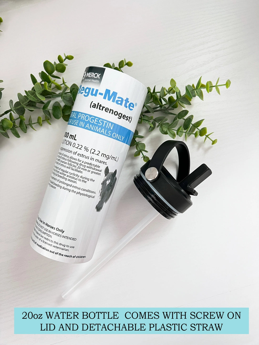 Bring a touch of humor and equestrian flair to your everyday hydration routine! Inspired by the iconic packaging design of Regumate, these sublimated aluminum drinkware pieces are perfect conversation starters for horse vets, trainers, and female horse owners. Two Styles Available: • 20oz Tumbler – Includes a reusable metal straw and straw cleaning brush. • 20oz Water Bottle – Features a screw-on lid with a detachable plastic straw for easy sipping on the go. Premium Quality: Sublimated in-house for crisp, permanent graphics that won’t peel or fade. Durable & Lightweight: Aluminum construction keeps drinks cool and makes it easy to carry in the barn, truck, or office. Equestrian Gift Idea: A clever, one-of-a-kind gift for veterinarians, horsewomen, and equestrians who appreciate a laugh. Whether for long days at the clinic, horse shows, or simply staying hydrated ringside, these tumblers and water bottles combine functionality with equestrian humor. Wholesale-ready and guaranteed to stand out in any tack shop or boutique!