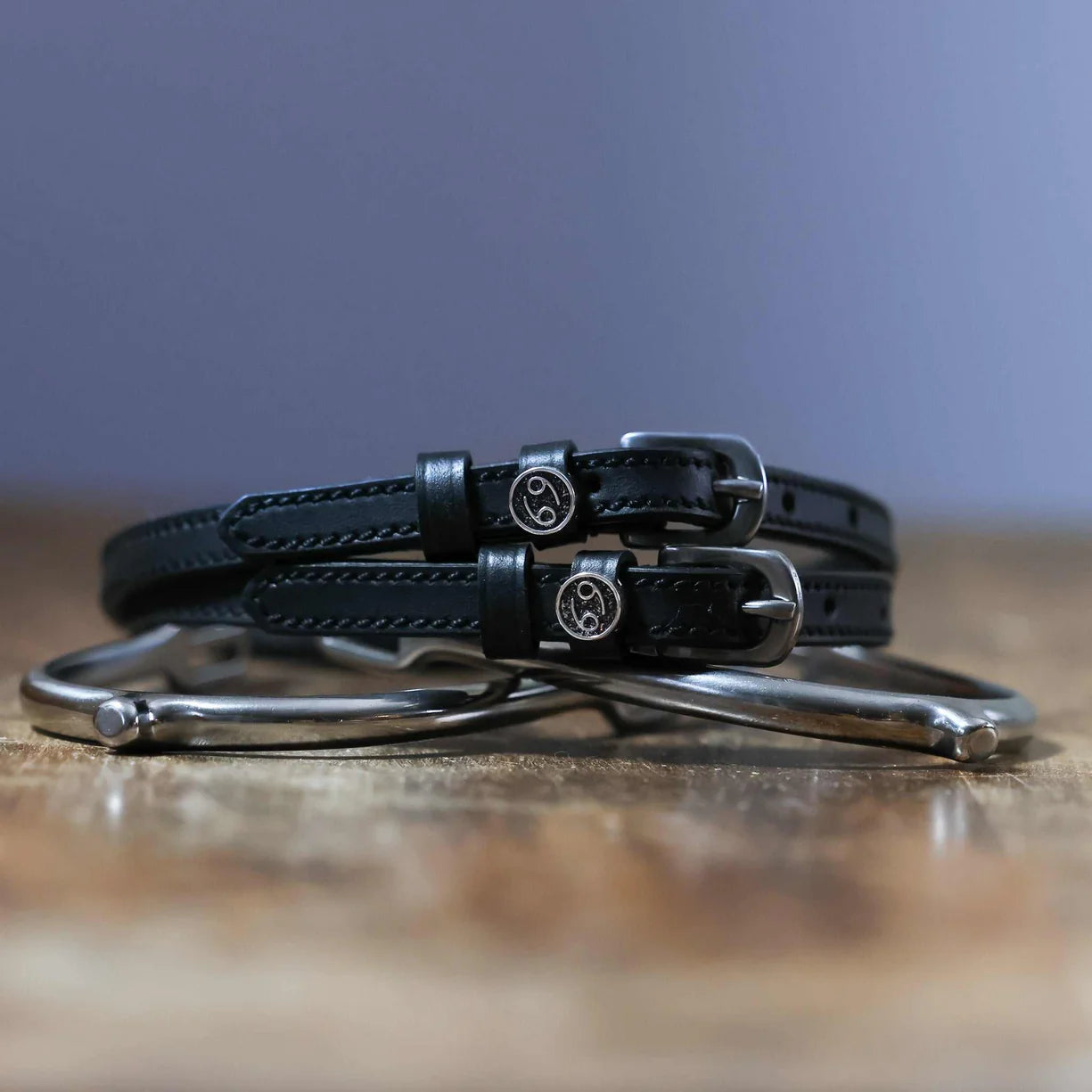 Zodiac Spur Straps from ManeJane bring together luxury, durability, and personality. Handcrafted from premium black leather with a non-stretch interior, these Spur Straps hold their shape ride after ride. Each pair features a stainless steel buckle, two keepers, and a custom ManeJane charm for a signature look. At 18 inches long, they fit smoothly through your spurs and stay secure. Elevate your tack with ManeJane Spur Straps—where form meets function in every ride.
