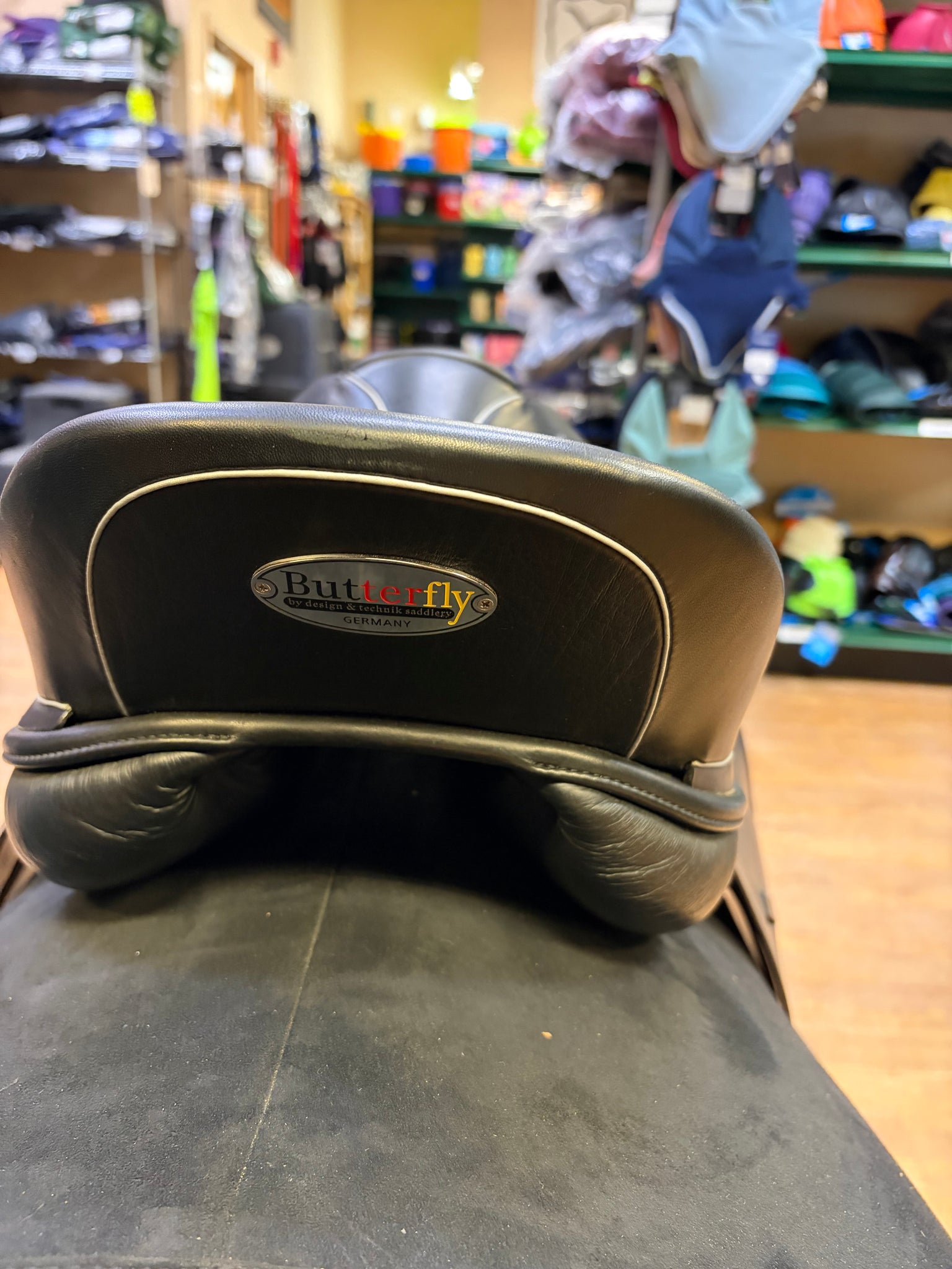 - Comments : Pegasus DT Saddlery Claudia dressage saddle with their innovative Butterfly tree. This saddle has a self adapting feature that can adjust to any horse on its own with its hinged tree points. It also has a cutback tree, short flaps, adjustable blocks and a narrower twist for a super close contact ride. This saddle has been gently used and is in excellent condition.