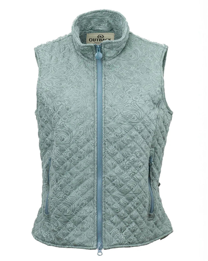 If you are wild at heart our Wilona is for you! This beautifully cut vest is embossed with a paisley print into the microsuede shell. Stand collar, zip hip pockets, and a dropped hem in the back make this one fashionable and functional vest.
