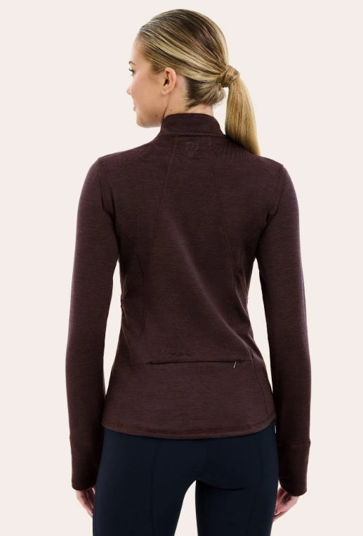The Kira is a modern layering essential designed for the fall season. Featuring a sleek zip-up design and contemporary collar, it’s crafted from a soft, warm heathered fabric with built-in stretch and moisture-wicking properties. A back zipper pocket and UPF 30 sun protection add practical performance to this flattering, functional style.